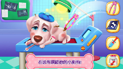 >小狗狗生病时,你需要照顾她,带她去宠物诊所!