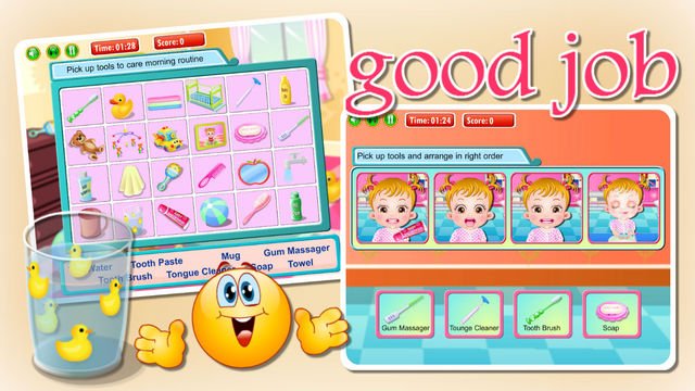可爱宝贝刷刷牙是一款趣味十足的儿童休闲游戏.今天天气很不错,可爱的宝贝一大早醒来发现妈妈还在睡觉,于是宝贝想自己学习刷牙,不过宝贝不知道怎样正确的刷牙才是健康的哦,现在你就来教教宝贝吧!宝贝不想打扰妈妈,所以自己准备自己刷牙,和她一起学习刷牙吧!游戏特色:一款具有教育意义的宝贝护理小游戏,教育小朋友们学会独立宝贝黑兹尔要自己学会刷牙啦。