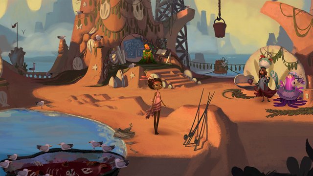 《破碎时光 Broken Age 》是一款指点式的冒险游戏,凭借唯美的画面、丰富的剧情和强大的制作班底,使得游戏在发布之前就备受期待。该作品两位主角两条主线,讲述他们在各自的世界经历平行的故事。玩家首先在第一章扮演生活在云上之城的女孩 Vella,Vella 是一位被选中成为怪物祭品的十几岁少女,她被期望以死拯救村子,所有人都将这视为莫大的荣誉,甚至连他的父母也是如此,但她决意同怪物作战改变自己的命运。