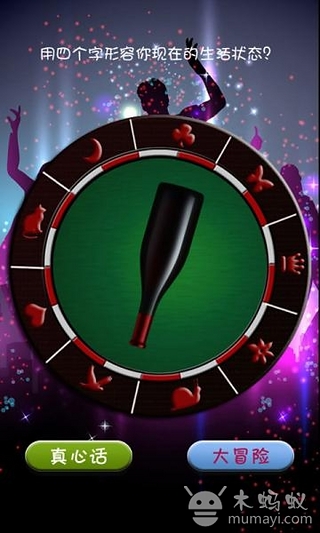 聚会时的经典游戏,酒瓶那么一转内设多种完美惩罚选项。玩法:玩家们分别选择一个图形,然后点击酒瓶。瓶子转动停止后,指向图形对应的玩家,选择是接受 大冒险 或 真心话 。点击按钮,随机抽取 问题 或 惩罚 内容。