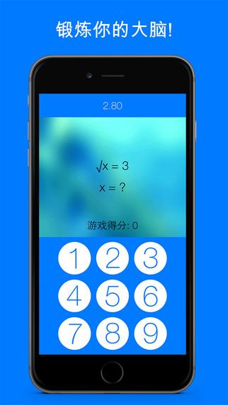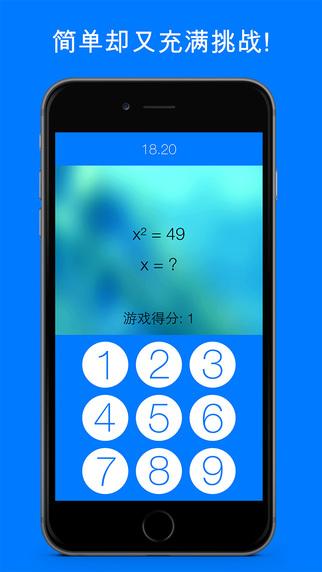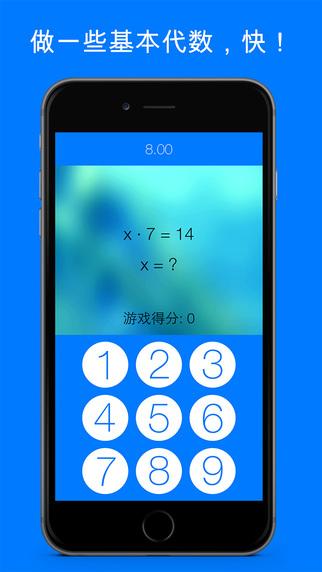 在这个欢乐而又激动人心的代数游戏里挑战你自己吧! 这个游戏其实很简单; 就是做简单的代数题, 但是解题时间极其有限并且答错还会消耗更多的解题时间!我们将难度分为三个等级, 你可以选择轻松简单的等级, 正常且稍微有点挑战的等级或者挑战大师的等级。