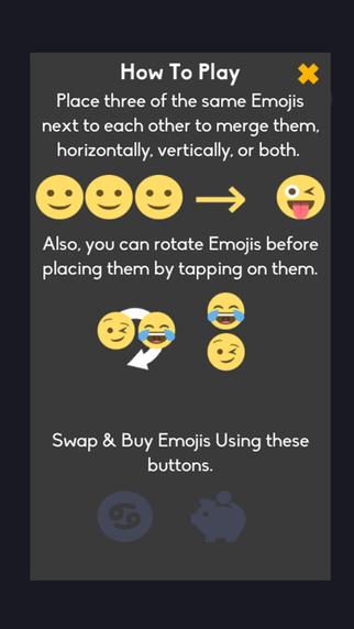 Merge your favorite Emoji's, collect points and unlock new packs, power-ups! Merge 3 of the same emoji and keep your board clear. Get to the fire emoji to blow up 9 tiles at once! Can you get the high score, and unlock all Emoji Packs?