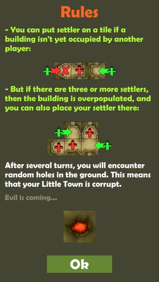 《该死的小镇 Damn Little Town》是一款向经典桌游《卡卡颂 Carcassonne》致敬的全新游戏。《卡卡颂》是一款策略性版图桌游,玩家在其中扮演中世纪君主,派遣手下亲信开疆拓土,占领并管理领地,赢得最终胜利。《该死的小镇 Damn Little Town》从某种程度上来看是大同小异,不过在游戏快结束的时候,古老的恐怖诅咒将开启,而你必须撤离心爱的城堡,并尽可能多地带领沿路村庄的人们逃离险境。