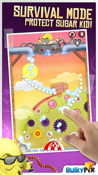 糖果宝贝是一款需要玩家运用反应能力以及逻辑思维的小游戏。其游戏目标便是绘制防御墙保卫“Sugar Kid”,抵御恶魔“柠檬先生”。在游戏中,你的“Sugar Kid”是一个会被“苏打”毁灭的脆弱英雄,你要使用大规模道具去保护他,帮助他。游戏共有90个关卡,另设“生存模式”、“死亡任务模式”