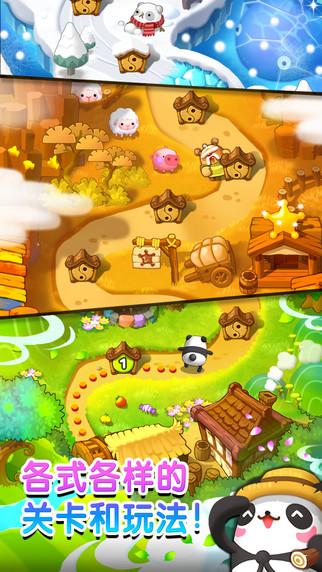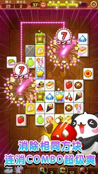 可爱消除新作《熊猫连连看》是一款消除两个有着相同食物图样的方块的双消型益智游戏。 故事背景描述原本和平的动物村落,却因为突然出现的坏蛋「TuTu」,导致食物全部都被抢走,玩家们将化身为村子里可爱的国宝熊猫「TanTan」,并为了取回被抢走的食物展开一场大冒险! 规则超简单!COMBO超爽快!