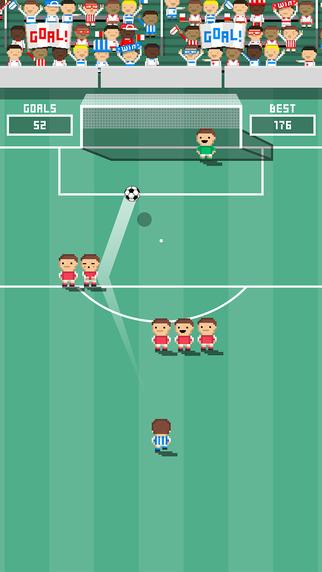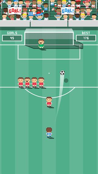 《小小射手 Tiny Striker》是一款以足球为主题的像素风游戏,游戏中玩家要扮演一个足球球员,用自己精湛的球技在重要的罚球时刻,把球踢穿对方的防守,尽可能在短时间内更快更多地攻进球。游戏的操控非常简单,只要通过在屏幕上相应的位置进行画线滑动,就能让球跟着滑动的轨道走,最终飞进球门得分。玩家每一次进球之后对方防守球员就会变换防守阵型,玩家只有调整进攻路线才能顺利进球,而且还必须赶在时间耗尽之前,可以说是既考验速度又考验技术。《小小射手》玩法简单,内容有趣,是一款让人上瘾的自虐神作。