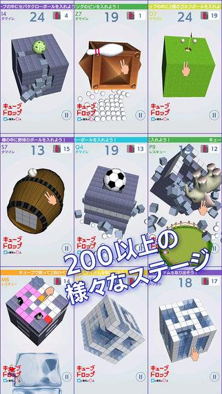 《方块坠落》(キューブドロップ)是一款3D物理解谜游戏,游戏操作非常简单,总共只要两根手指头!用一根手指就能够选择方块,只要从起点连接到终点,被圈起来的方块就会崩落掉;而两根手指则能够上下左右地对画面进行回转、拉伸和倾斜立方块。游戏主要有三种模式,而且还分为A~Z共26个等级,以及9个区域200个以上关卡!不单止能解谜,还会有收集要素,让玩家们能够在动脑之余,能够在救出的可爱的动物中得到治愈。