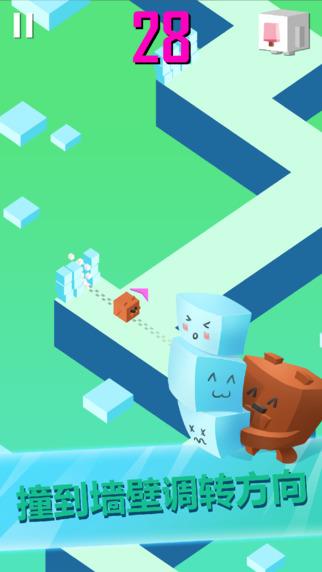 《撞南墙》是一款趣味休闲游戏,小人偶们一直向前奔跑,从不停歇,除非掉进冰冷的河水,所以拯救它们是你的责任!点击屏幕即可改变小人偶的行进方向,如果错过了一次转弯机会,没关系,继续向前,撞到冰墙,利用撞墙产生的反作用力反弹回来即可重获转弯机会。失去一次转弯的机会并没有什么,不要惊慌,下一个机会马上就会到来!奔跑吧,小人偶们!