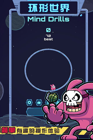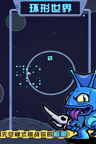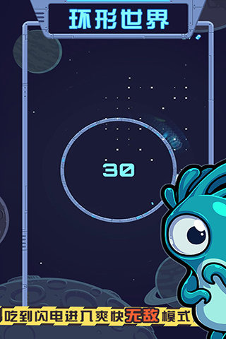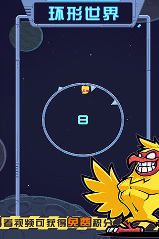 《环形世界》是一款操作非常简单并且令人上瘾的虐心小游戏,你所要做的就是点击屏幕,切换角色在圈里还是圈外奔跑,闪躲钻头的袭击!收集电池就可以获得积分!吃到闪电就可以进入爽快无敌模式!不断挑战自己和好友,创造最高分数!欲罢不能的刺激体验就在《环形世界》!