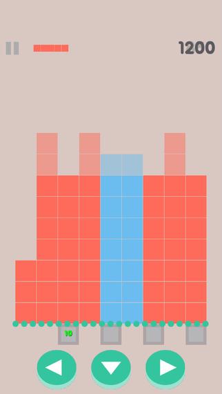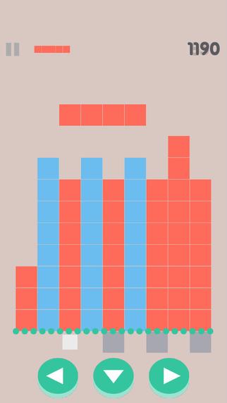 平坦积木是一款画面和玩法都颇为休闲的益智游戏,这个积木游戏中玩家无法旋转积木,只能左右移动下落积木的位置。玩家必须将对准底下以下的两个白色小方块进行消除,否则同色积木堆得再高也没用。
