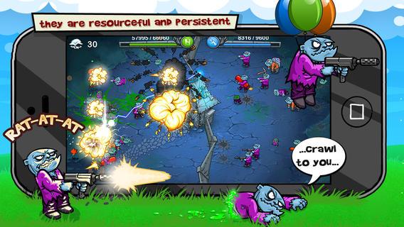 这是一款僵尸防御类游戏。你通过释放能量闪电抵御住四面八方来的僵尸攻击,它们会带着机枪,轻剑,火箭筒,等等。小编提示你,别忘了在关卡结束后升级你的属性,以应付下个关卡。9个独特而强大的特色能力(地震、冰冻、地雷、空袭等等),共有着超过100种的升级,15种不同类型的敌人,超过25种成就等你来挑战!集成OpenFeint和游戏中心的成就和排行榜哦!