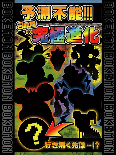 ※ゲーム内容※ 〜・〜・〜・〜・〜・〜・〜・〜・〜 BOKEMONリーグ制覇を目指す主人公の旅たちの日、 博士がおもむろにとりだしたモンスター玉 物語はそこから始まる。 タップ、進化、バトル、育成、クイズを兼ね備えた 新感覚の暇つぶしゲーム『BOKEMON』 体験せよ!!これがオマージュの金字塔だ! 超人気ゲーム、マンガ、アニメ要素が盛りだくさん! 激ムズ要素一切なし!くだらないセリフが満載! おふざけ要素、ぐで要素、ゆるい掛け合い、シュール、時にシリアス!そんな世界観へあなたを誘う。 一度ハマると脱出不可能!? ボケっとしてないでモンスター進化させるで! 予測不能のストーリー展開の先に待つエンディングとは・・・!? 君は果たして最終進化を見届ける事が出来るか!? 〜・〜・〜・〜・〜・〜・〜・〜・〜 ※ゲームシステム※ 〜・〜・〜・〜・〜・〜・〜・〜・〜 敵キャラをタップしてどんどん倒し、経験値を集めてレベルアップ! 更なる進化へ・・・! 全部で9つの試合がきみの挑戦を待ち受ける!! 試合に勝利し『バッジ』をゲットだぜ! 以外にあっさり負ける! しかし負ける程、強くなる! 敗北しても強くなって再スタート! 繰り返すたびに経験値UP!進化速度UP! G(ゴールド)を貯めて機能解放すれば新たな敵との展開が待っている! ・ジム(試合)の解放 ・アイテム(敵モンスター)の解放 ・アイテムの出現数 アイテム機能をどんどん解放すればサクサク進む! 音楽、BGMにも工夫を凝らしたネタ要素が盛りだくさん。 あなたはそれに気づけるか!? カメラ機能でキャプチャをパシャリ TwitterやFacebookへのソーシャル投稿で友達に進化を自慢しよう! 倒した敵キャラ、モンスターも写メできるよ! さぁ、ボケっとしてないで究極進化とリーグ制覇を成し遂げよう! 〜・〜・〜・〜・〜・〜・〜・〜・〜 ※ご注意※ 〜・〜・〜・〜・〜・〜・〜・〜・〜 ・無課金アプリです。ゲーム中の通貨はすべて無料でご利頂けます。 ・ゲーム途中にバッテリーが切れますと、直前の失われたデータは戻りません。 ・キャラを育ると共にキャラへの愛着が湧いてきますが、簡単に敗北をしてしまうゲームなので落ち込まないでください。 ・バカゲ―、クソゲーと思っても、口には出さないで頂きたい。 ・通信が不安定な場合は場所の移動や、wi-fi、通信環境などをご確認頂き接続をお試しください。 〜・〜・〜・〜・〜・〜・〜・〜・〜