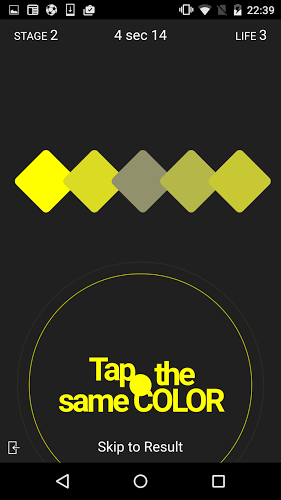 《r.色彩 r.color》是由 r.c.o.inc. 提供的一款考验眼力的色彩休闲游戏。游戏总共100关,不过才4条命,游戏看似简单但其实具有非常大的难度,在一堆相似的颜色中找出和目标相同的颜色即可过关,每一关的颜色都非常相近,不仔细看的话,你会觉得在你眼前的颜色不是都是一样的吗!想挑战的玩家不妨下载试试吧~千万不要玩到怀疑自己的色彩感觉有问题哦。 【游戏特色】 - 游戏完全免费 - 考验眼力,别样休闲 - 游戏不需网络 【测试机型】 谷歌Nexus7(Android 5.1)