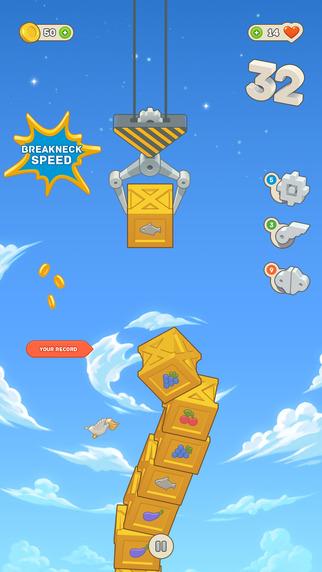 《货物之王》是一款挑战性十足的休闲游戏。屏幕上有一台运送集装箱的升降机,玩家通过在屏幕上的单点控制游戏中的升降机,使得货物完整的落在控制机下方的货车上。要注意的是,集装箱的运动只能是自由落体运动,你只有把握好点击屏的时机,才可以让集装箱落在货车车厢上,一个、两个、三个……集装箱们将会被堆叠成一座集装箱塔。同时游戏十分贴心的为每个关卡设计了一次重来的机会,而操作失败之后将会有一次黑白画面回放。
