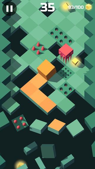 按压屏幕左或右侧来滚动方块,躲开障碍和陷阱。收集金块来解锁新的角色。