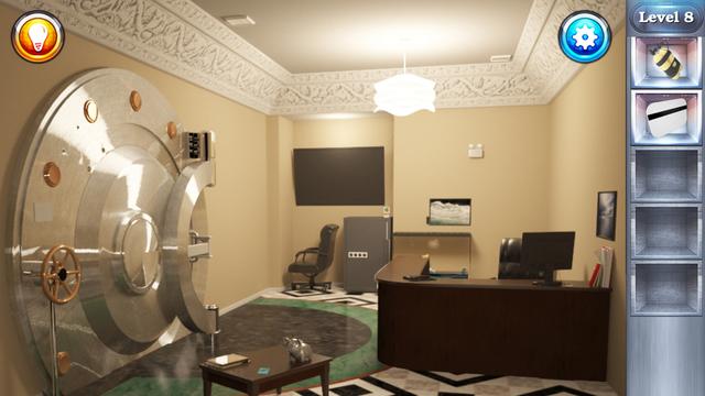 《银行逃脱》是一款脱逃类游戏。你已经成功潜入银行盗取了钻石,现在你需要不留痕迹的逃离这里。游戏看似简单,但是会让你欲罢不能。睁大你的眼睛,找出脱逃暗示。看不到的地方,藏有某种东西,需要你认真观察解出纠结复杂的谜题。松懈的瞬间,就注定你只能走向失败。游戏各种多样的挑战谜题将会使你欲罢不能。游戏不但考验你的逻辑思考能力,还进一步的考察你的抽象推理能力。准备好接受这场挑战开始你的逃脱之旅了吗?