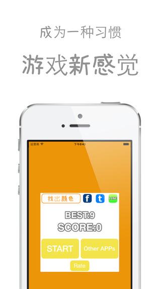 《找出颜色》是一款休闲娱乐游戏,小巧有趣,操作简单,容易上手,看似简单,其实不然。游戏画面十分简单,玩家在屏幕中色块区域选出不同的色块,越往后颜色越相近,越难选。用手指点出不一样的色块,考验你的眼力与辨色力,你能闯几关?喜欢此类游戏的玩家快来下载这款《找出颜色》体验试玩吧!