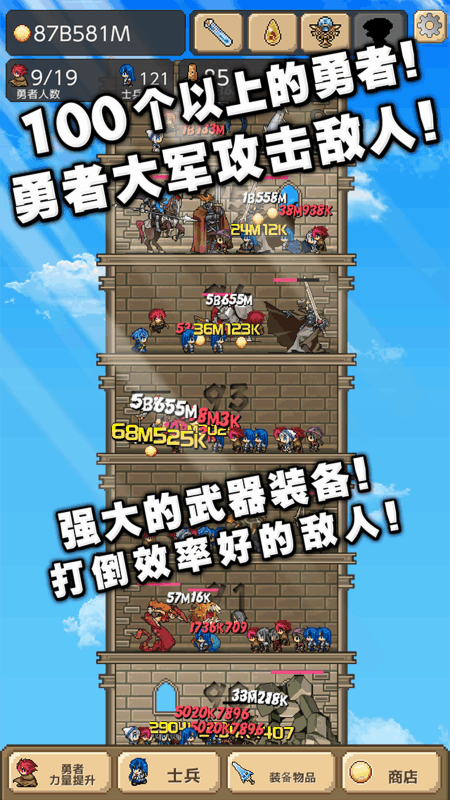 •Fill dungeons with heroes and attack monsters with your vast army!