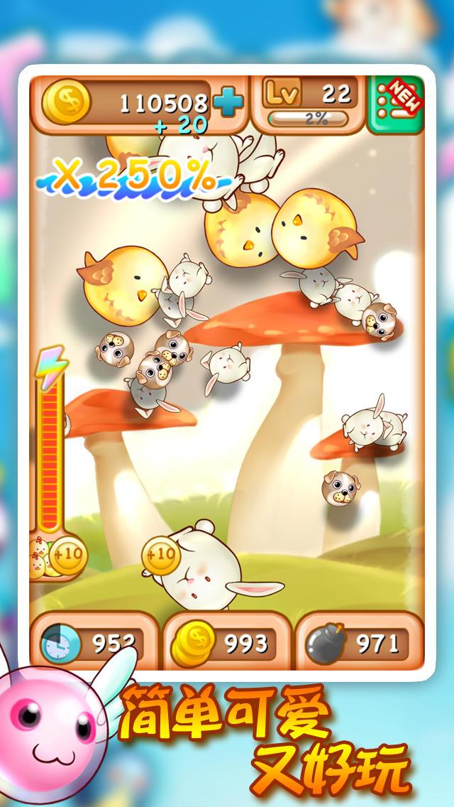 活泼又可爱的弹跳派对,让小动物们带给你愉快的好心情,纾解生活的压力,简单的玩法,只要点击让小动物分裂,分裂越多金币就获得越多!游戏特色:简单好玩,多点触控,与小动物们一起High翻天!超多Q弹可爱的小动物们,等你来收集!多种装扮配件,搭出专属于你的可爱动物,向你的Facebook好友们分享!多种壁纸和场景任你挑选。三种技能让你所向无敌,金币加倍。Game Center排名,看谁最厉害。