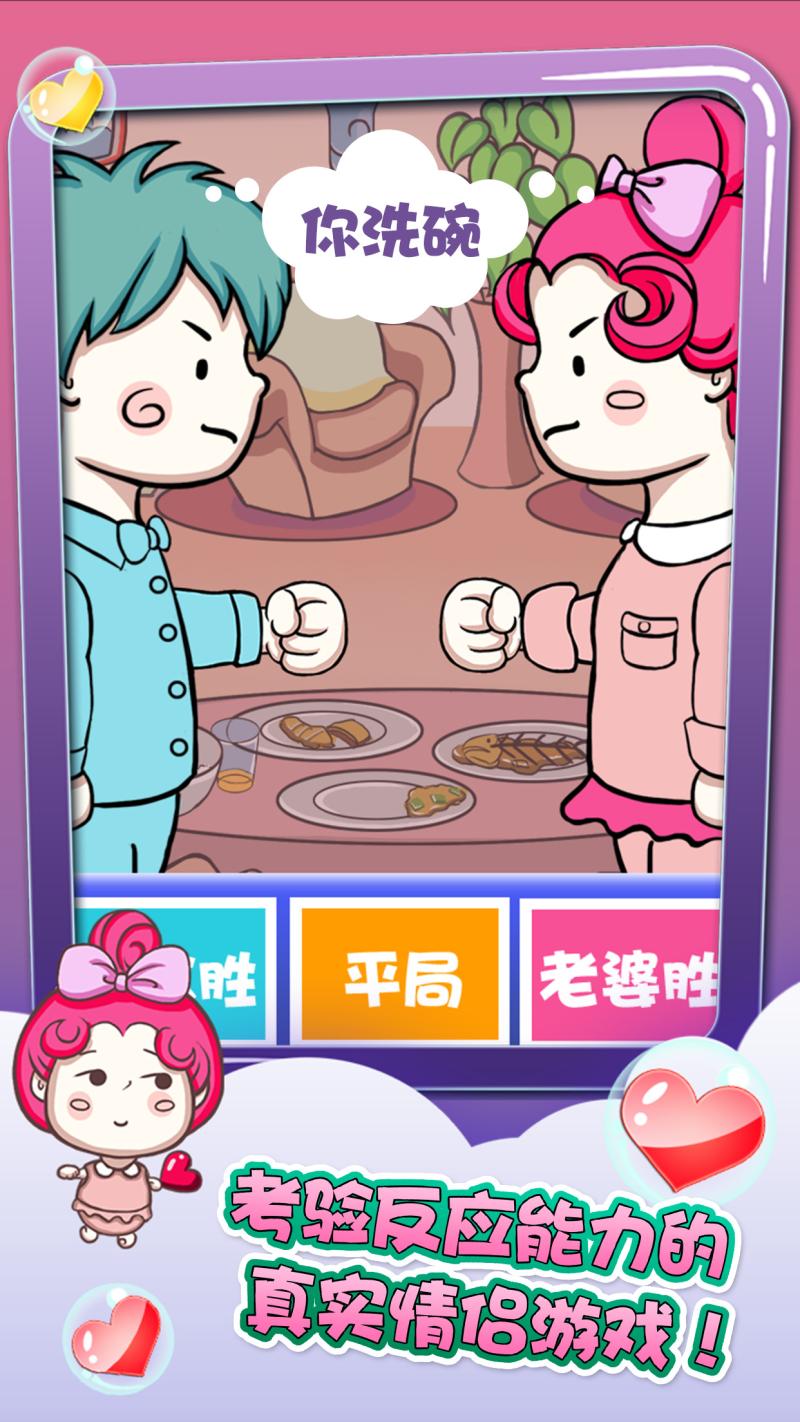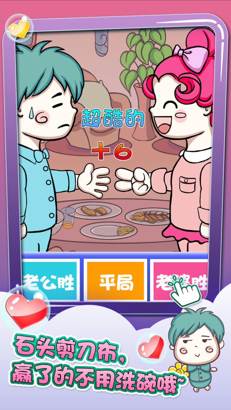 情侣必备休闲游戏,猜拳比输赢,输了的要洗碗哦~无比简单的操作,只要快速判断谁胜利即可,锻炼你的反应力和手速。情侣们如果还在为餐后谁洗碗而纠结,不妨来一场真实的猜拳游戏。既好玩又甜蜜,为什么不呢~爱Ta就和Ta一起玩游戏吧!