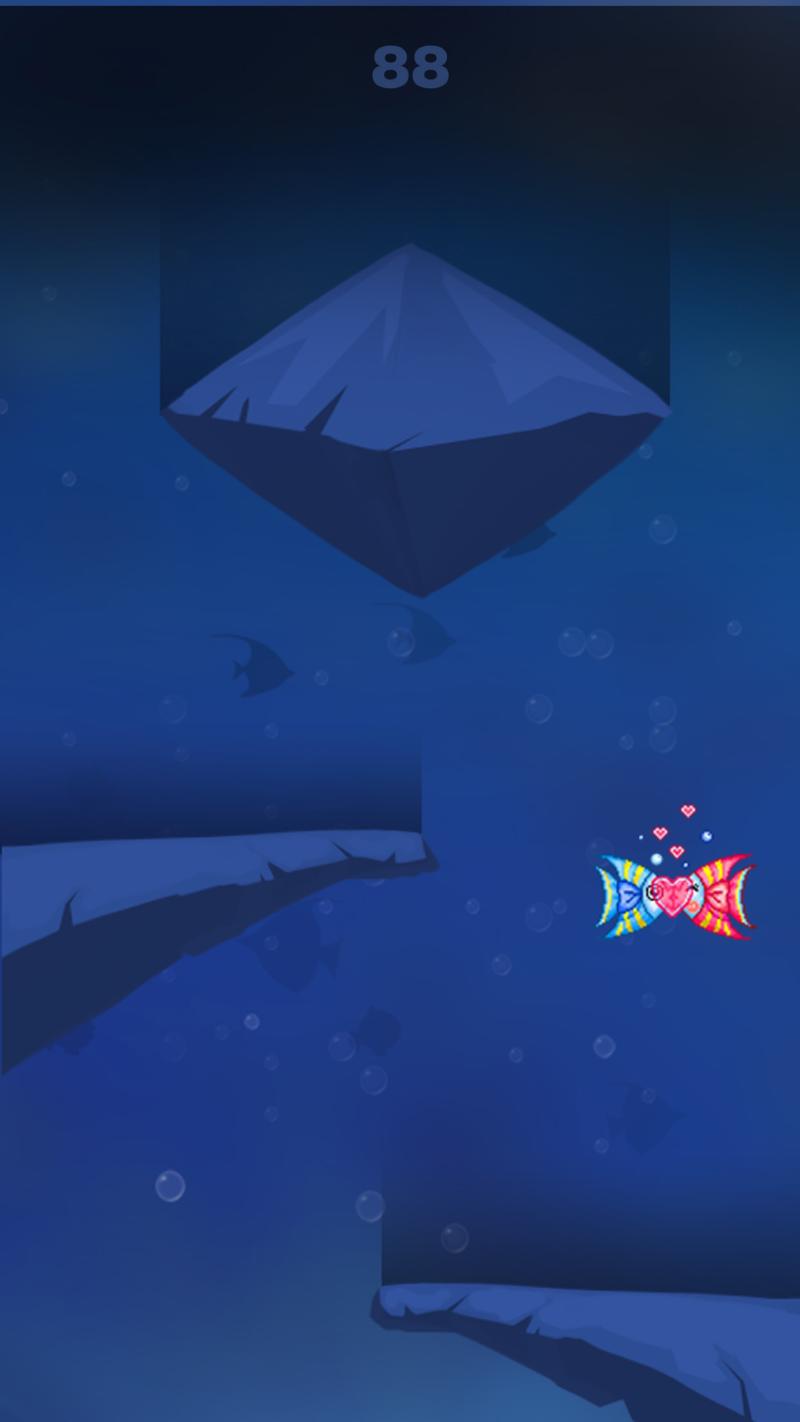 一款可以单人操作也可以情侣操作的游戏正式登陆苹果市场。这是一款情侣游戏,你可以和你的爱人一人控制一条鱼,时而分开时而合体,跨过一个个障碍,最终一起达到爱的巅峰。在玫瑰花的沐浴下达到爱的巅峰。游戏中点击屏幕控制小鱼左右或者合体躲避障碍物。快来和你的爱人一起玩亲嘴鱼吧!游戏最后可以点击输入你和你爱人的名字,一起秀恩爱!