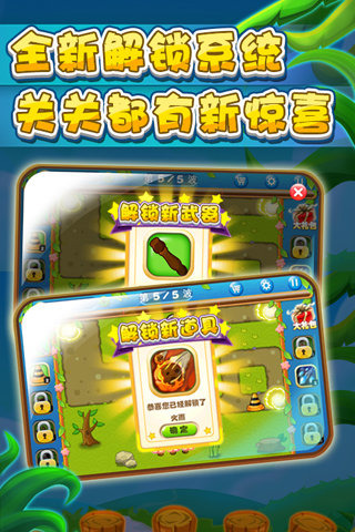 一群贪吃的小怪兽正准备进入你家后院菜园中偷吃蔬菜!现在是考验你勇气和智慧的时刻了,拿起手中的武器保卫菜园,配合种类丰富的道具,巧妙布局,对贪吃的小怪兽们进行致命一击!全新的玩法,绚丽的特效,爽快的打击感,超长的关卡,让您刺激不断,流连忘返,我和小伙伴们都准备好了,赶紧拿起武器战斗吧!