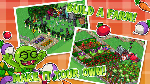 僵尸农场 Zombie Farm,《植物大战僵尸》里我们要抵御僵尸,而《僵尸农场》里面我们的工作是种植僵尸去攻击他人,难道这两款游戏中有着藕断丝连的关系么,这些暂且不谈,而这种僵尸与农作物的小清新组合倒是颇受欢迎,现在就试试吧