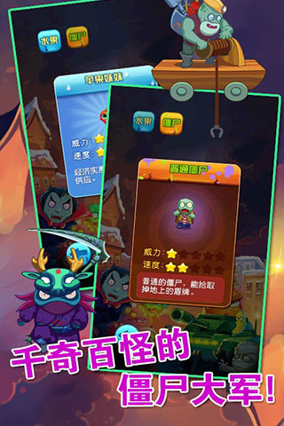 尸王来袭!警报拉响!植物萌军携手抗敌!经典策略塔防玩法完美继承。黄金矿工乱入,忍者龟与木乃伊联合突击,是奇妙的朋友?还是魔鬼的步伐!超多关卡,乐趣无穷,只有想不到,没有做不到!让我们和植物一起来周游世界,保卫家园吧!