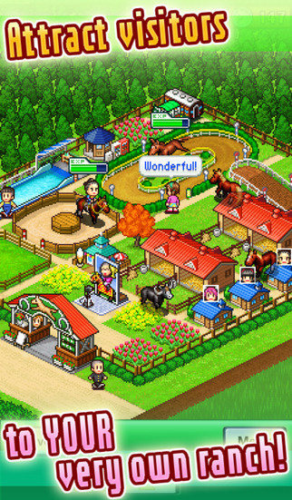 Build training facilities like dirt courses and pools amidst the beautiful natural surroundings of your ranch. Increase your ranch's fame and entice visitors to spend some dough at your ranch's amenities, like ice cream stands and gift shops.