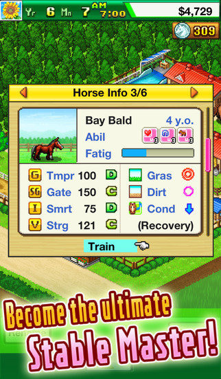 Find horses with the right combination of stamina and speed and intensity and train them to race. Keep winning races to earn bigger and better prizes, as well as the ability to compete in even bigger and more exciting races on an international scale.
