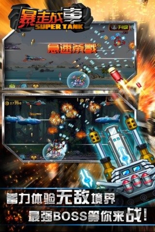 《暴走战车》是一款坦克射击类游戏,强大改装系统任意DIY,火箭炮、跟踪导弹、爆裂炮,让极品装备武装起你最牛逼炫酷的坦克。简单的操作,超爽快的手感,抛开一切繁琐,轻松体验顶级科幻机甲附身。在前线作战是唯一的目的,你必须在敌军的冲击下,使用各种特种技能生存下来,为阵亡的兄弟们复仇。