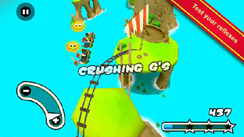 Play 40 exciting 3D action-packed rollercoaster tracks with the highest peaks and biggest drops in Career Mode. Challenge and overcome loop-the-loops, cha jumps, and more to unlock extreme achievements like Hyper Speed and Crushing G’s! Speed increases your excitement meter, multiplying your score, but even all jolts are enough to send carts hurtling into space!