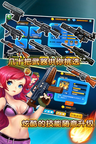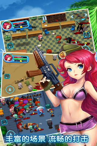 一款美女僵尸题材的射击游戏,游戏中多种武器可供选择,真实还原了CF武器属性,街机水准的打击感,画质优秀,各种BOSS拥有炫酷技能,美女战士拥有多重绚丽技能,游戏中运用了各种真实物理特效,颠覆了传统手机枪战游戏玩法!