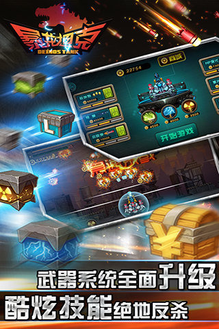 《暴龙坦克》是一款坦克射击类游戏,强大换装系统任意DIY,火箭炮、跟踪导弹、爆裂炮,让极品装备武装起你最牛逼炫酷的坦克。简单的操作,超爽快的手感,抛开一切繁琐,轻松体验顶级科幻机甲附身。在前线作战是唯一的目的,你必须在敌军的冲击下,使用各种特种技能生存下来,为阵亡的兄弟们复仇。