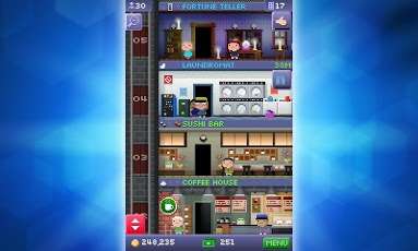 在 Tiny Tower(迷你小楼)游戏中,你需要一层一层的将各种建筑的模块堆积在一起,你能够对建筑的外观进行自定义,也可以对建筑中的各种设备进行升级服务。只有这样你才能够招揽到足够的顾客,赚取更多的金钱。