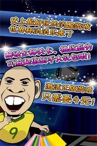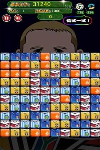 《世界杯消消乐》就是这样的一个消除类游戏,在轻松的气氛中带你走进世界杯的国度。我们有五个国家队的球衣,分别是巴西,阿根廷,德国,意大利和荷兰。点击两个或更多相同的球衣可以消除它们,同时消去的球衣越多,就能得到越高分;最后剩下的球衣越少,得到的奖励越多。还有好听的世界杯主题曲作为背景音乐,热门的球星随处可见,让你闻到浓浓的属于世界杯的味道。