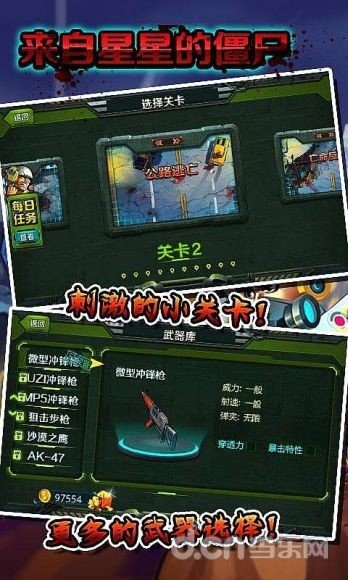 《来自星星的僵尸》是一款刺激的射击动作游戏,在史诗般的背景音乐中,感受枪弹和血浆的交响曲!世界在等待英雄拯救,黎明在等待星火点燃!