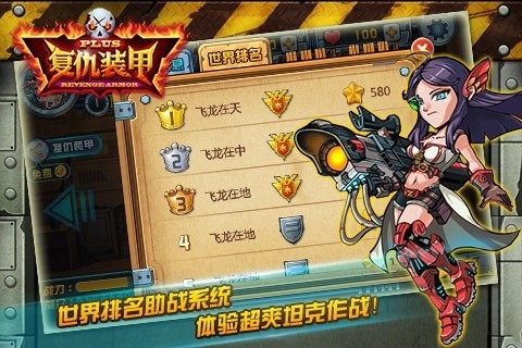 《复仇装甲plus》是一款基于拥有Android系统触摸屏移动电话的射击类游戏,玩家在游戏中通过操作,挑战不同难度关卡。关卡越往后,过关难度越高,考验玩家的反应及操作速度。游戏中有多个不同配置的战车让玩家选择,并且在剧情的推动下,玩家驾驶战斗在不同风格的场景中。在玩家离线时,也有矿井源源不断的产出资源提供给玩家使用。