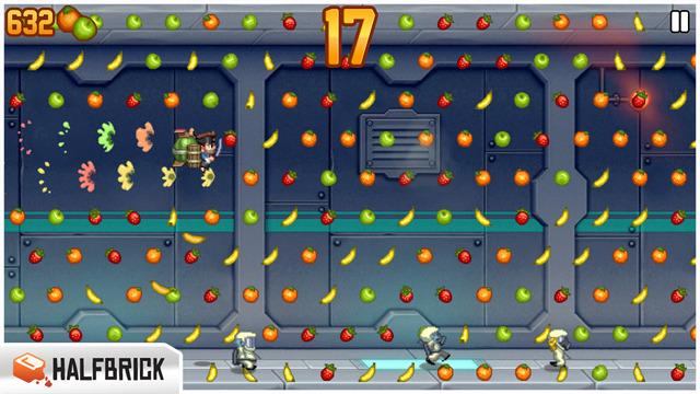 《Jetpack Joyride》是个快节奏的横板游戏。控制主角利用背上的Jetpack,来在逃亡的路上避开各种障碍和消灭敌人。不过这个Jetpack的动力不是传统的燃料动力,而是利用不断发射子弹来作为上升飞行动力。游戏的操作则为触屏操作,只需要用手指按触屏幕的任何一个可触发控制的位置,就能进行操作。十分简单,你一定会爱上它的!