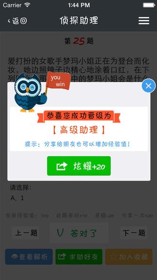 你想像名侦探柯南一样才智过人么?你想像福尔摩斯一样拥有过人的智慧么?在侦探事务所,你可以尽情的发挥你的直觉,享受破案之后的成就感。相信你绝对会爱上这种感觉,好玩到根本停不下来!你不仅可以向好友炫耀你超强的洞察力,还可以加强逻辑思维能力,激活你的大脑。随着侦破案件数量的增多,侦探的等级也将有所提高哦。您是否也期待从初出茅庐华丽转身为超级侦探呢?还在等什么,快来开启侦探之旅吧~