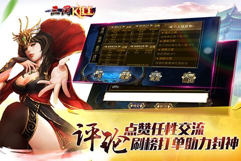 在《三国Kill》中,玩家将扮演三国时代的一位驰骋沙场的武将或运筹帷幄的文官,结合自己的身份,合纵连横,使用战术和谋略寻找与自己目的相同的队友,并与之配合,击败敌人,获得最后的胜利。