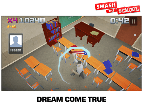 《粉碎学校 Smash the School》对学校不顺眼?不爱上课?写作文作业?来这款游戏帮你消除你的问题,摧毁学校的所有直到校长办公室吧!喔,对了,请不要模仿,因为这个作风是逆天的行为哦。 【游戏特色】 1. 用游击队的武器捣毁学校! 2. 获得升级:武器、房间、服装! 3. 缓解你的压力!