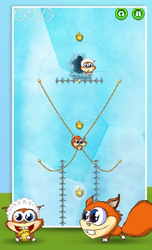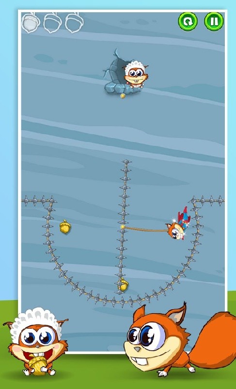 《收集坚果 Catch The Nuts》是一款模仿了《割绳子》的有趣的益智休闲游戏。一只可怜的小松鼠已经饿得不行了,松树妈妈决定出去给小松鼠寻找坚果,但是一个个见过都被悬浮在了空中,松树妈妈急得自己团团转,但幸好这时候你出现了,机智的你能帮助松鼠妈妈获得坚果吗?