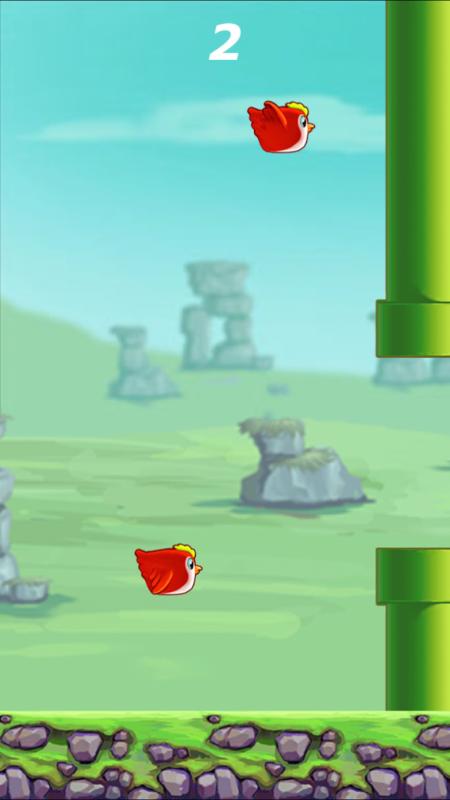 两只亲密的小鸟在一起飞,你可以通过点击屏的左半边或者右半边控制他们。请控制好你的节奏,使他们顺利通过障碍。