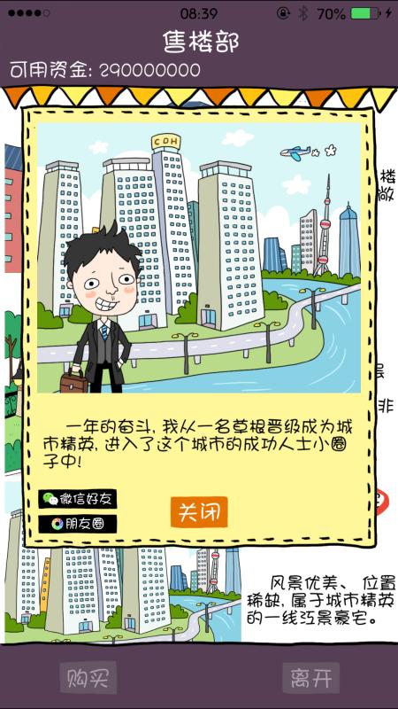 《屌丝买房记》是一款非常有趣的文字模拟经营类休闲游戏。游戏讲述了一位在城市打拼的屌丝奋斗买房的故事。游戏玩法很简单,你需要在游戏中通过低买高卖各类道具赚取一定的钱,你每天都可以查看房价的涨幅。通过自己的精打细算,逐渐积累金钱。在游戏中,你要在一年时间内,用仅有的三千块钱赚到几百万甚至几千万,最终买到理想中的房子,你能完成这个挑战吗?屌丝能否逆袭就看你了!