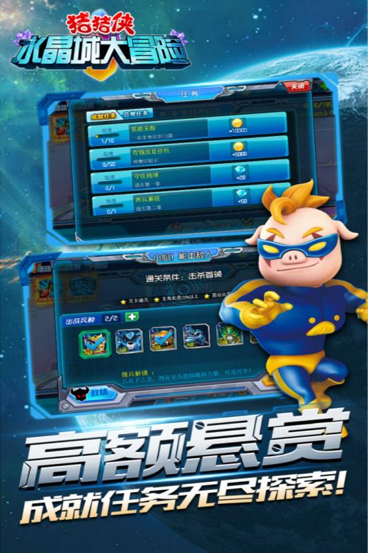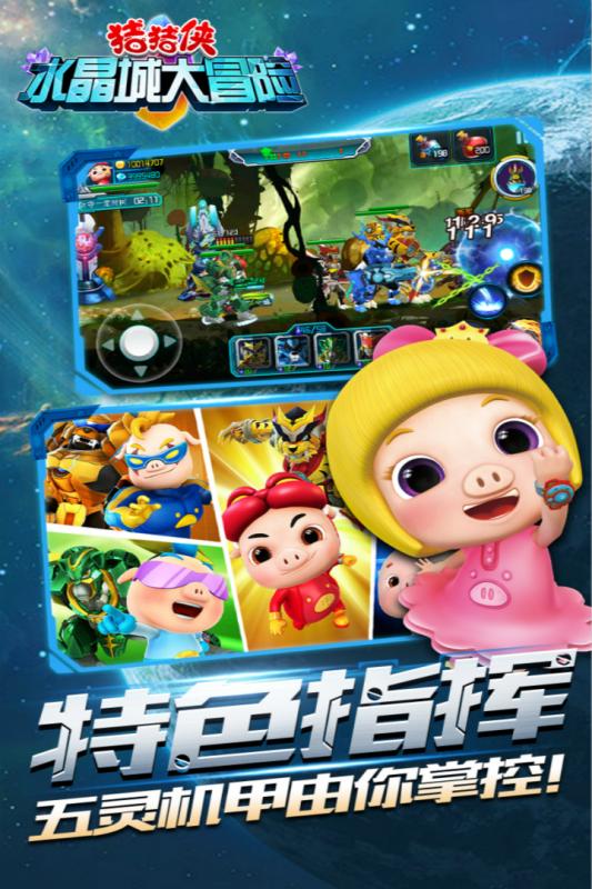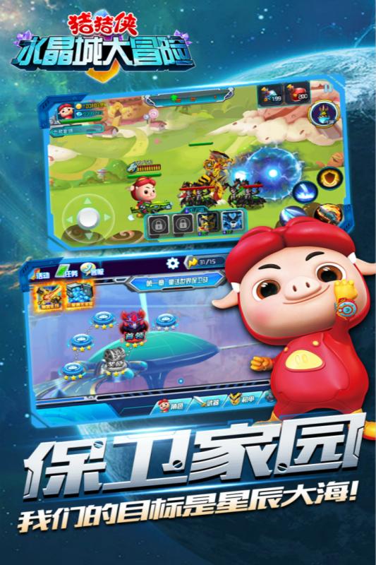 《猪猪侠水晶城大冒险》是一款格斗与塔防元素相结合的手机游戏,知名IP猪猪侠正版授权。多样的武器和兵种、丰富的关卡和挑战、特殊的道具与角色,快来与五灵卫一同对抗邪恶军团,保护童话世界吧。