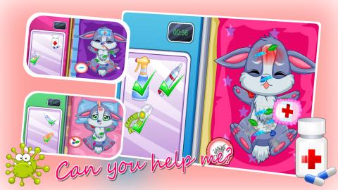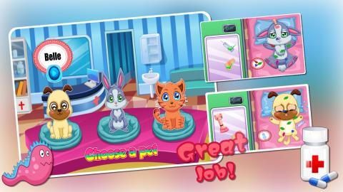 《宝贝宠物护理装扮》是一款需要你照顾宠物的儿童游戏。宝贝开了一家宠物诊所,专为各种小动物治病,今天又有三只小宠物被送进来了,现在需要你来帮助它们了,给它们治疗,让它们尽快恢复健康。等到它们健康之后,你还要给它们装扮漂亮的衣服,可以根据不同的宠物来做出不同的装扮哦。结束后不要忘了给它们拍照留念,快来和你的宠物一起玩吧!