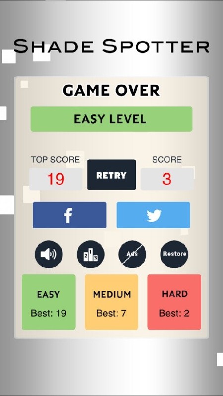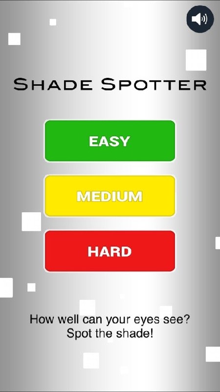 How well can your eyes see? Play the most addictive game Spot The Shade to test your eye-sight! Simply try to spot the shade on each time, as it progresses to the next level the shades and shapes get lighter and harder every time!