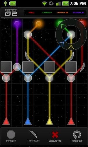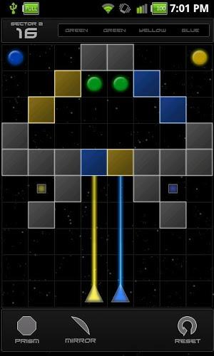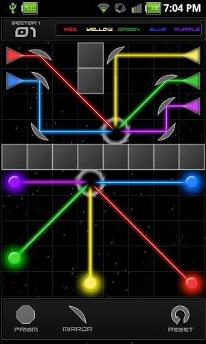 Refraction(光线折射)是一款非常棒的物理类的游戏,这次,主宰整个游戏的物理定律不再是那些重力、弹力之类的了,而变成了光线的折射与反射现象!游戏中,你需要借助于各种反射镜和棱镜来拆分和组合各种颜色的激光,并让各种光线到达指定的那些点上。游戏的操作并不复杂,在游戏界面的下方是棱镜和反射镜,它们中间的数字是你在这一关可以使用的该类型的数量。拖动该类型的镜子到上面即可,然后你可以通过转动那个出现在镜子周围的圆盘来调整镜子的角度(这个主要是反射镜)。需要注意的是,反射镜的平面那边才是反射面,我一开始没注意,用那个弧面对着激光,结果没用。游戏中会有一些不同颜色光点,而激光的颜色也各不相同(或者你通过棱镜分解以后会产生不同颜色的光线),你需要将对应颜色的光线反射到相同颜色的光点上。 游戏特色: - 120个从易到难的关卡; - 精细的游戏画面; - 每个关卡都有多种解决办法(不是唯一的一种组合模式); - 游戏将定期进行更新。 提示 :