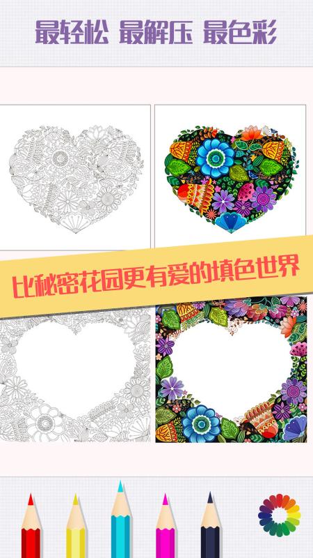 《填色秘密花园》是一款休闲的填色游戏。错落优雅的线条描绘出花卉、小鸟和曼荼罗的图案,黑白、素雅、清新、耐看,这是一场纸与笔的游戏,黑白线稿,繁复精美,你可以充分发挥想象力,涂绘出心中那个完美的世界。